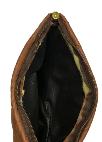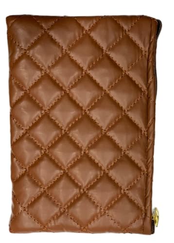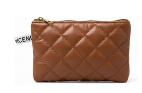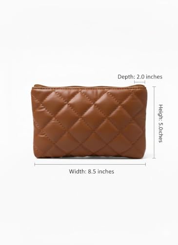 شنطة مكياج بنمط كاروهات جديدة متوسطة الحجم - شنطة تخزين مستحضرات التجميل - بني فاتح