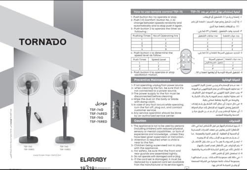 مروحة ستاند من تورنيدو، مقاس 16 بوصة، 4 ريش، ريموت كنترول، لون رمادي، موديل TSF 75G 1000 واط