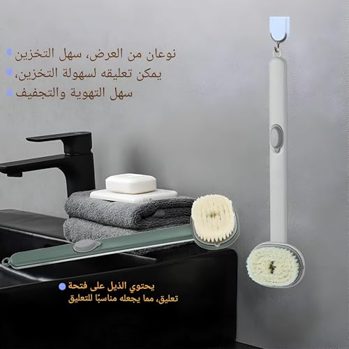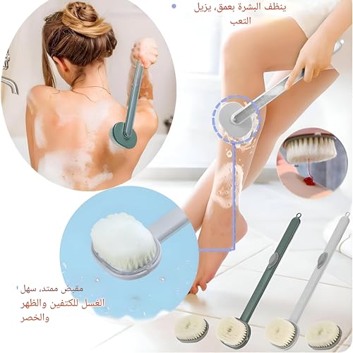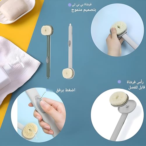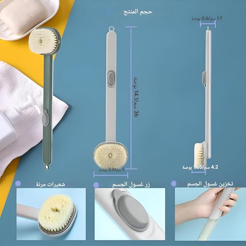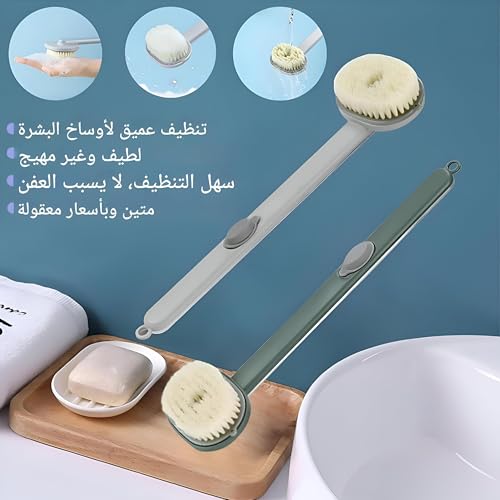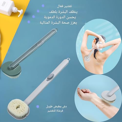 فرشاة استحمام وتوزيع الصابون السائل بمقبض طويل للتقشير العميق وتنظيف الجسم والتدليك (قطعتان)
