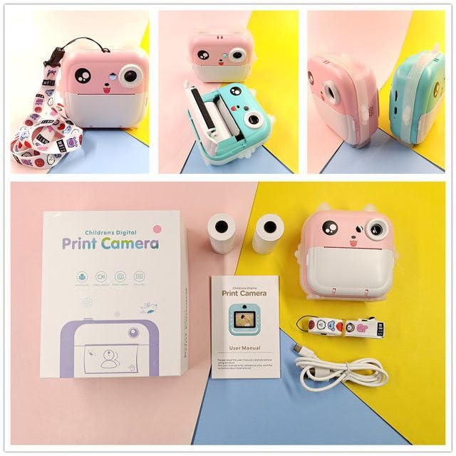 كاميرا اطفال 4 في 1 للتصوير الفوري والطباعة وتسجيل الفيديو والكثير من الالعاب وحتى الاستماع الى الموسيقى. سماعات اذن مضيئة لالتقاط صور عالية الجودة