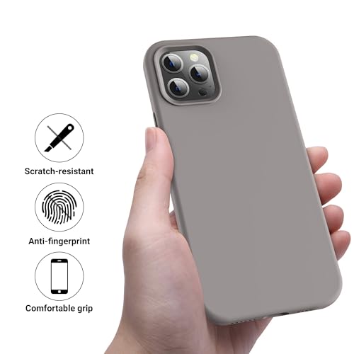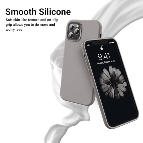جراب حماية من السيليكون السائل للهيكل بالكامل من دلع موبايلك، مضاد للصدمات بتصميم رفيع مع بطانة ناعمة من الألياف الدقيقة ضد الخدش لموبايل آيفون 13 برو ماكس (6.7 بوصة)، (ايه. ستون)