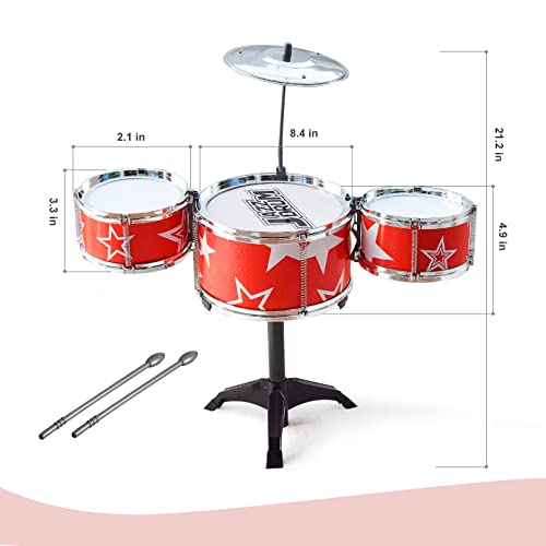 - 【ملحقات ووظائف كاملة】تتضمن مجموعة طبول موسيقى الجاز الروك طبلة وحامل طبلة وصنج وعصي طبل. تجعل من السهل على الأطفال بدء حفلة موسيقى الروك. الحجم عند التركيب حوالي 43.6 × 29.5 × 55 سم
