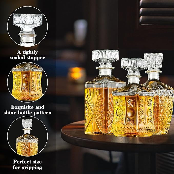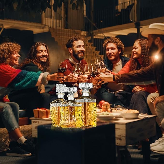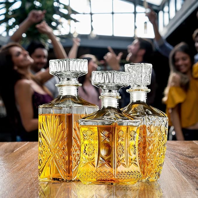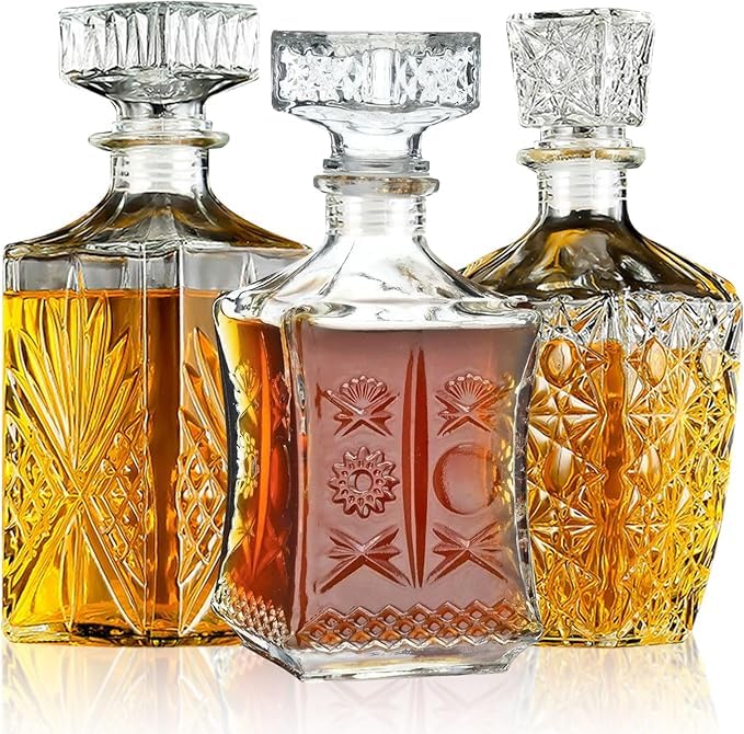 طقم زجاجات عصير طازج للرجال من 3 قطع، زجاجات مشروبات باردة انيقة مصنوعة يدويا بثلاثة انماط فريدة بأنماط معقدة
