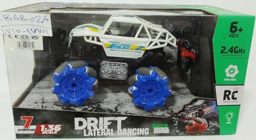 سيارةبلون ابيض وعجلات زرقاء جهاز تحكم عن بعد ببطارية قابلة لإعادة الشحن ونظام تعليق أمامي وخلفي لعبة للأطفال سن 5 سنوات فما فوقللاطفال ولاد وبنات
