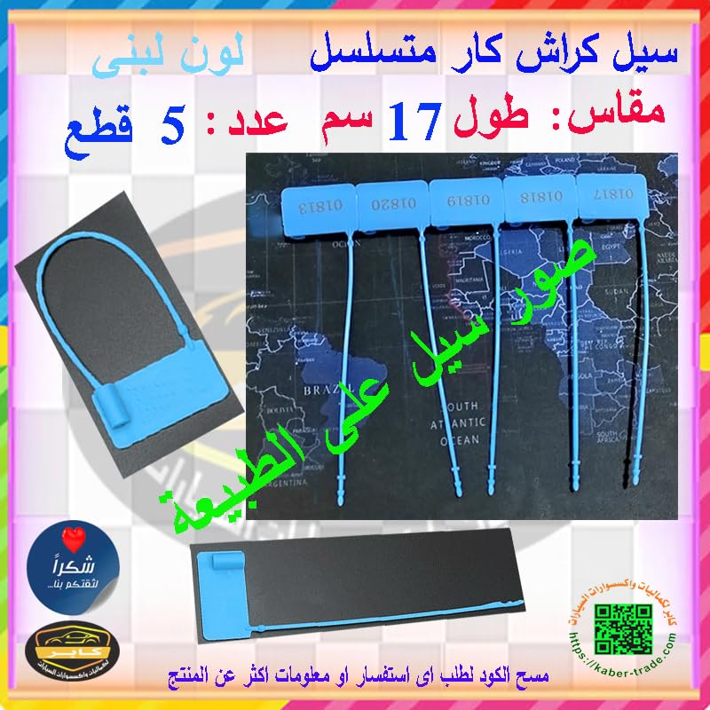 أربطة الكابلات ذاتية القفل ، سيل كراش سدادات امان ، اربطة مرقمة ومتسلسلة ، تامين الحاويات والمتعلقات(سيل كراش لون لبنى ، طول 17سم ، عدد 5 قطع ) - من كابرمصر 2020