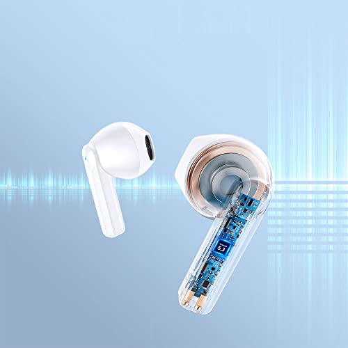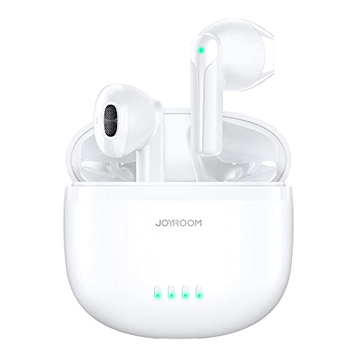 سماعات أذن لاسلكية بتقنية إلغاء الضوضاء البيئية بميكروفون مزدوج وعمر بطارية 21 ساعة مقاومة للماء بدرجة IPX4 خفيفة الوزن بتصميم نصفي داخل الأذن لتقليل ولصوت واضح وقوي لون أبيض من جوي رووم