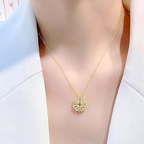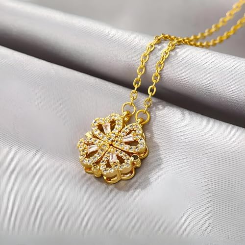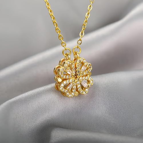 اكسسوار عصري - قلادة مغناطيسية تتميز باربعة قلوب رقيقة، هدية مذهلة للنساء والفتيات للاحتفال باللحظات الخاصة مثل أعياد الميلاد والديوالي والذكرى السنوية، تعزز أي زي