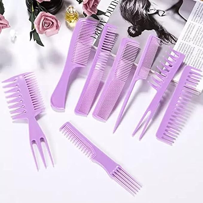 مجموعة أمشاط لتسريحات شعر متعددة من البلاستيك الناعم للبالغين (8 قطع)، متعددة الألوان