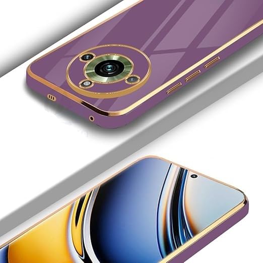 جراب خلفي من السيليكون لموبايل ريلمي 11 برو - بلس شبكة الجيل الخامس 5G | مطلي بالكروم الذهبي | حواف مرتفعة | ملمس فائق النعومة ممتص للصدمات - لافندر