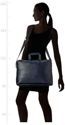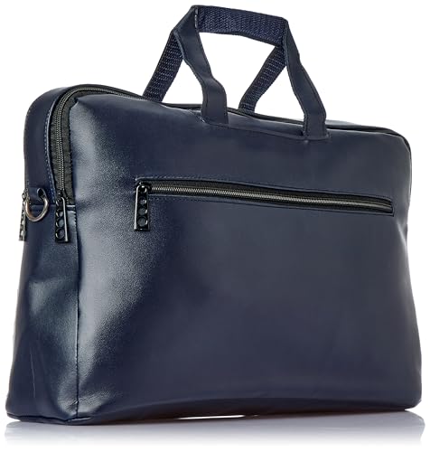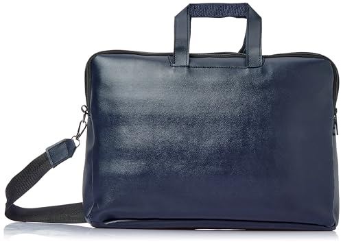 شنطة لاب توب واقية من الجلد مقاس 15.6 بوصة اكسيليريت مع حزام كتف ومقبض لليد | بتصميم متين متوافقة أجهزة ماك بوك واللاب أزرق غامق سادة