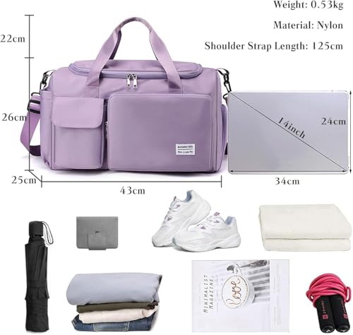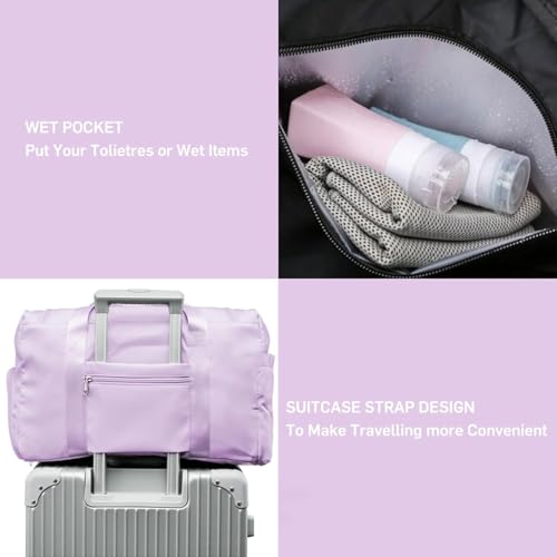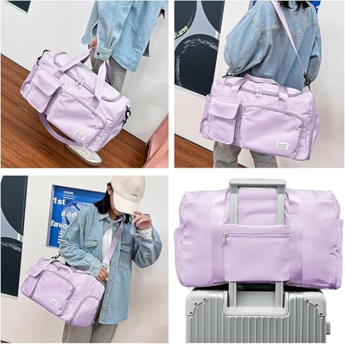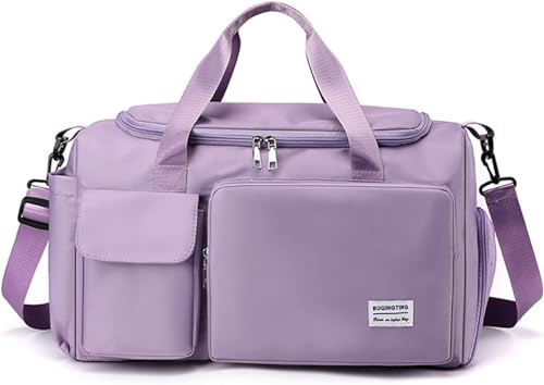 شنطة دفل للسفر للنساء والرجال، شنطة توت رياضية قابلة للطي لعطلة نهاية الاسبوع مع جيب للحذاء، شنطة كتف خفيفة الوزن للسفر وصالة الالعاب الرياضية والاستخدام اليومي، ارجواني، L
