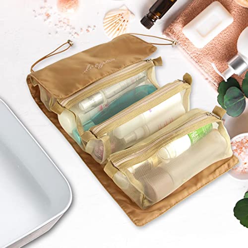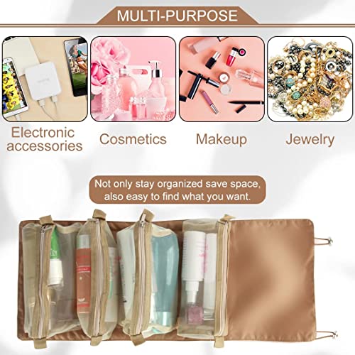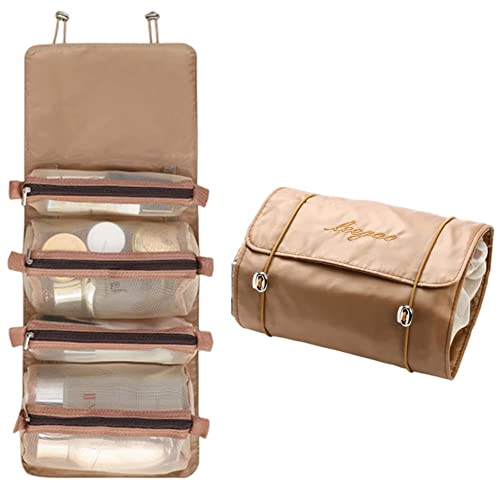 حقيبة سفر معلقة قابلة للفصل 4 في 1 مستحضرات تجميل بسعة كبيرة اقسام لتنظيم التجميل للنساء لون بني أدوات الزينة خلات فينيل-إيثيلين من بينجماي
