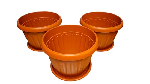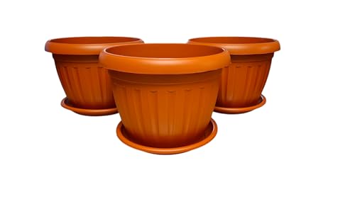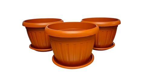 وعاء نباتات تيراكوتا من المانيا، دائري، 35 سم، 3 قطع، بلاستيك