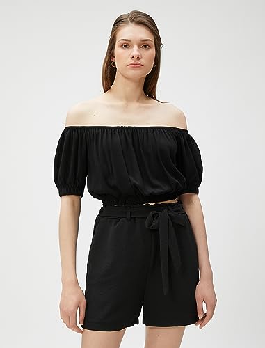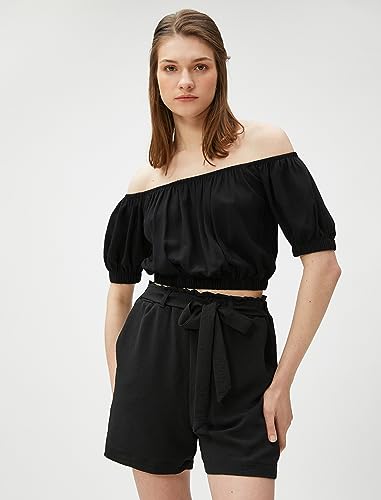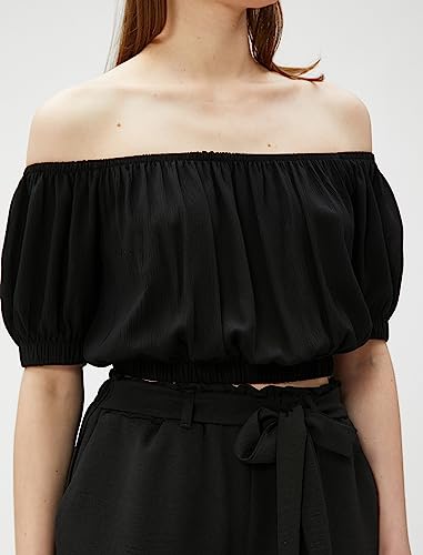 بلوزة قصيرة مكشوفة الكتفين للنساء من كوتون، توب كات مزين بتفاصيل أستك