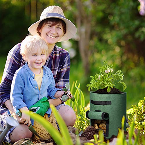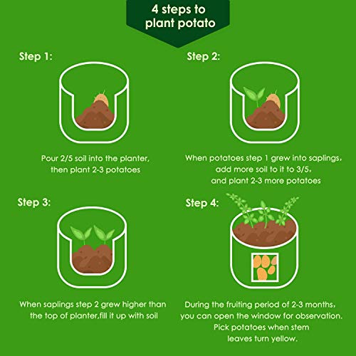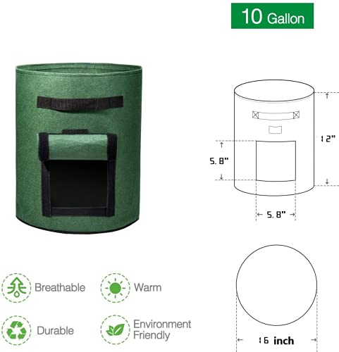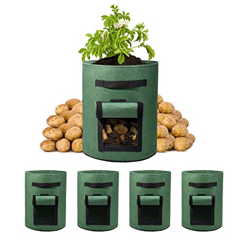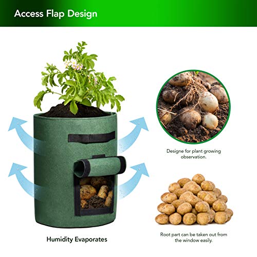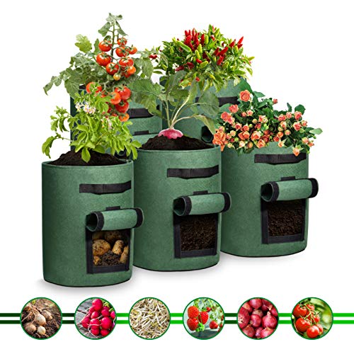 اكياس زراعة بطاطس سعة 10 جالون توضع على النافذة بفيلكرو لسهولة الرؤية من ووهوس، قماش غير محبوك بمسامات تهوية مزدوج الطبقة وبريميوم لزراعة البطاطس، وعاء قماشي جيد التهوية بمقابض، 5 قطع، متعدد الألوان