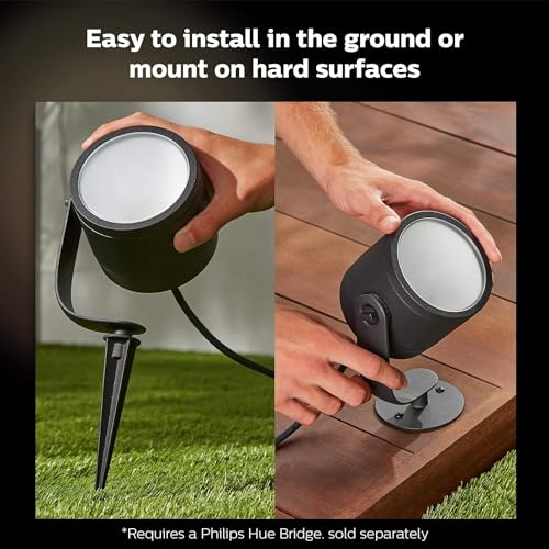 فيليبس هيو مصباح سبوت ذكي للاماكن الخارجية من ليلي اكس ال - مصابيح LED بيضاء وملونة - اضاءة منخفضة الجهد - عبوة واحدة - تتطلب جسر ومصدر طاقة - تحكم عبر التطبيق والصوت - مقاومة للطقس، معدن
