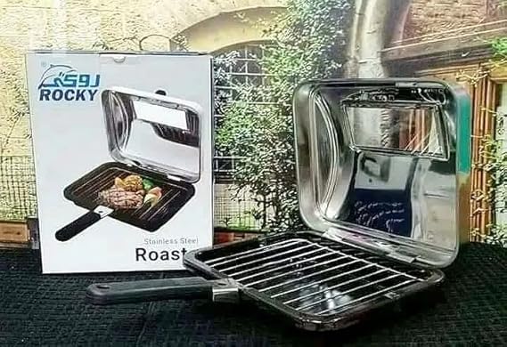 شواية بوتاجاز روكى الأصلي ستانلس ستيل بيد بكاليت فضى طويل عازل حراريا وموده ب مقدم من الزجاج لمتابعة الشوى ومتى عائلتك بطعم الشوى