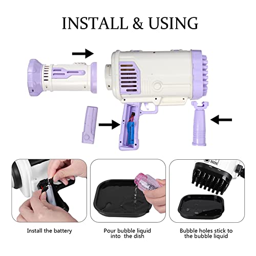 - مسدسات الفقاعات بازوكا، مسدس فقاعات، آلة فقاعات، مسدس فقاعات بازوكا، لعبة مسدس فقاعات للأطفال، سائل الفقاعات للأطفال بعمر 3 إلى 10 سنوات.