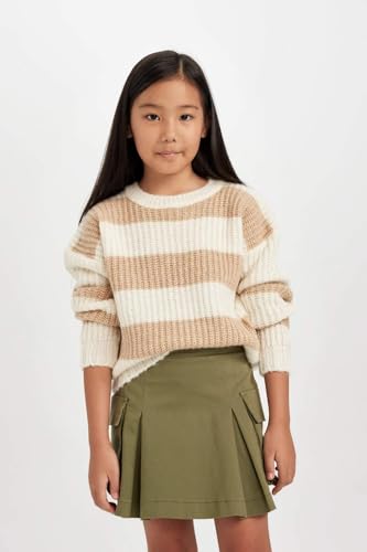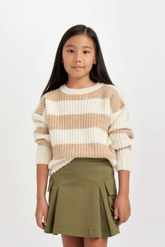 ديفاكتو بلوفر تريكو بقصة عادية ورقبة دائرية ضيقة واكمام طويلة للبنات A6009A8، بيج، 7/8 سنوات