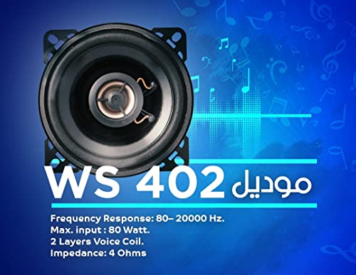 - استجابة التردد 80: 2000 هرتز - استجابة التردد 80:20,000 هرتز - الحد الأقصى للإدخال 80 واط - الحد الأقصى للإدخال 80 واط - ملف صوتي من طبقتين. - طبقتان من الملفات الصوتية - مقاومة 4 اوم - مقاومة 4 اوم.