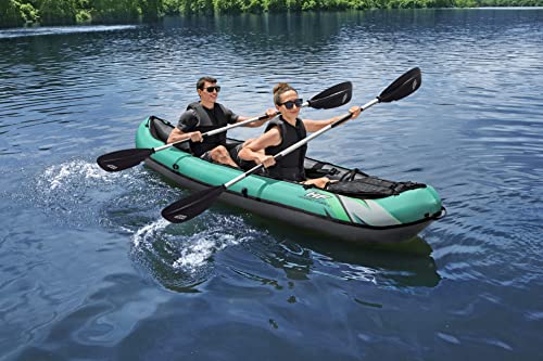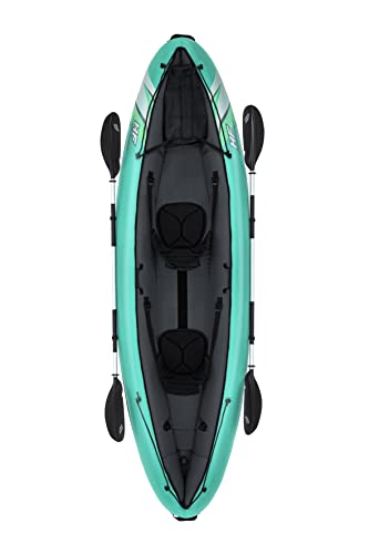 قارب كاياك هايدرو-فورس فينتورا اليت اكس2 من بست واي | مجموعة قارب قابل للنفخ مع مضخة يدوية ومجاديف ومقاعد وزعانف وشنطة تخزين | مقعدين