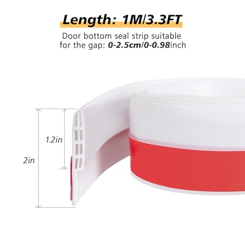 سدادة باب من السيليكون - شريط سدادة باب 39 انش لسد الفجوة تحت الباب للأبواب الداخلية والخارجية، شريط عازل للصوت لعوامل الطقس من صن مون (أبيض)