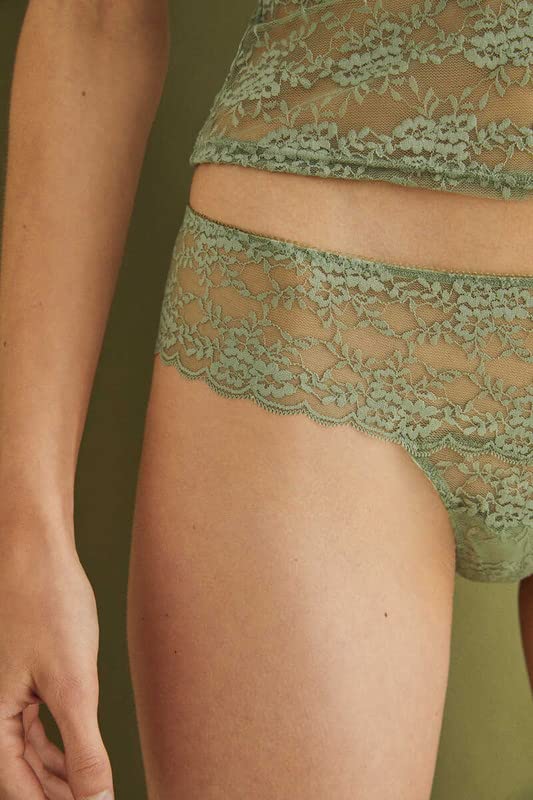 women'secret Women's Secret Wide Lace Brazilian Briefs Xl Olive