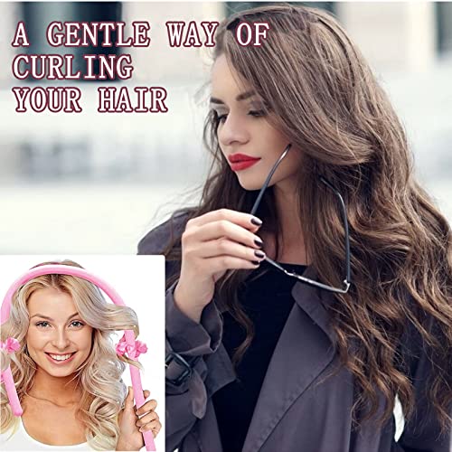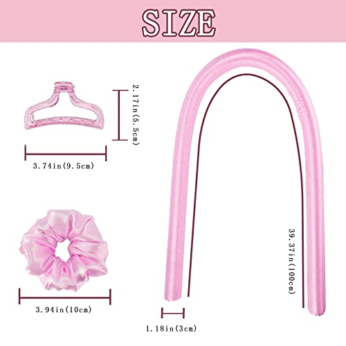 بكرات لتجعيد الشعر بدون حرارة مع مشابك شعر للاستخدام أثناء النوم طوال الليل مجموعة تجعيد القابلة للتعديل للشعر الطويل بينك زهري سيراميك من جيزيوان