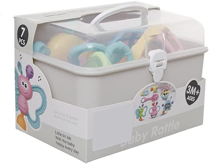 جيني مجموعة لعب خشخيشة للاطفال، انماط متنوعة (متنوعة)، بلاستيك، صندوق من 7 قطع
