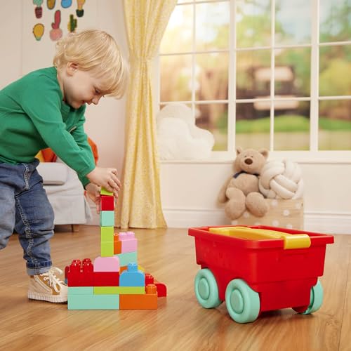 - ابني وانطلق: 46 قطعة من المكعبات الكبيرة بألوان محايدة تناسب الجميع، يمكن للأطفال حملها والتنقل بها بفضل عربة البناء الذكية!