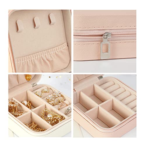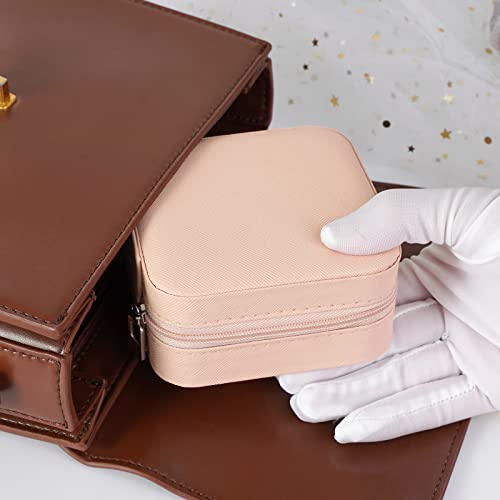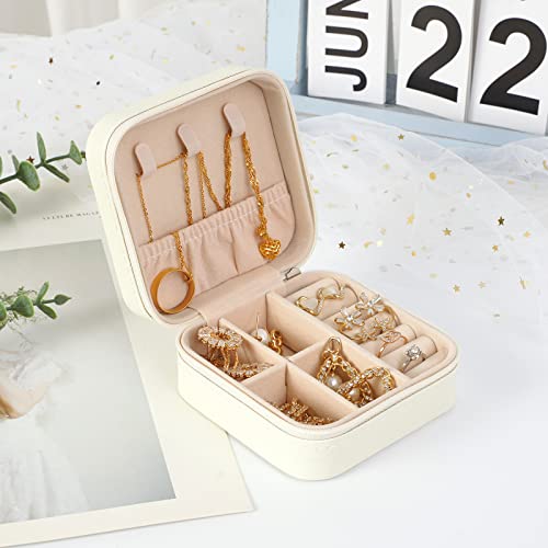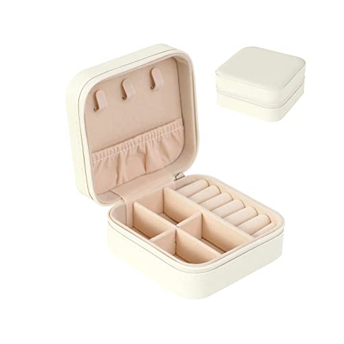 صندوق مجوهرات منظم للسفر شنطة تخزين صغيرة للخواتم والحلقان والسلاسل والاساور علب هدايا للبنات والنساء لون ابيض من Smchnla جلد صناعي