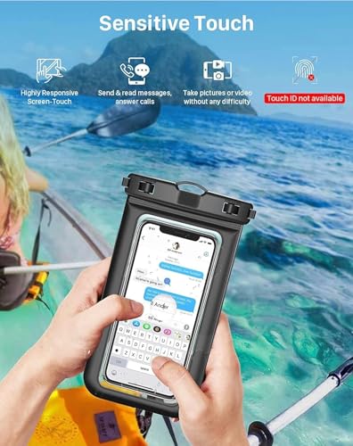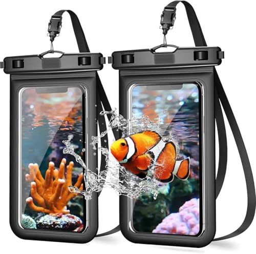 جراب موبايل مقاوم للماء متعدد الاستخدامات – حافظة جافة مقاومة للماء مع حبل تعليق للسباحة، الغطس والشاطئ والقوارب والحماية من الغبار والمطر (2 قطعة)