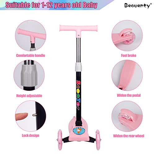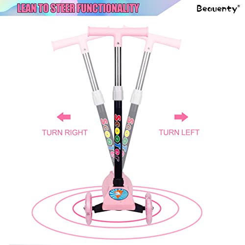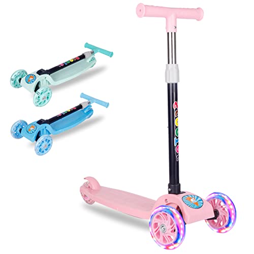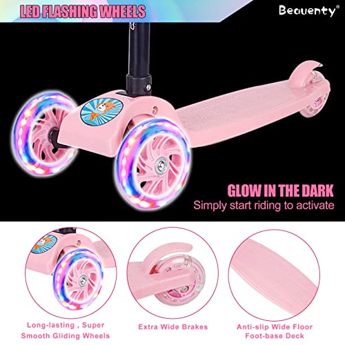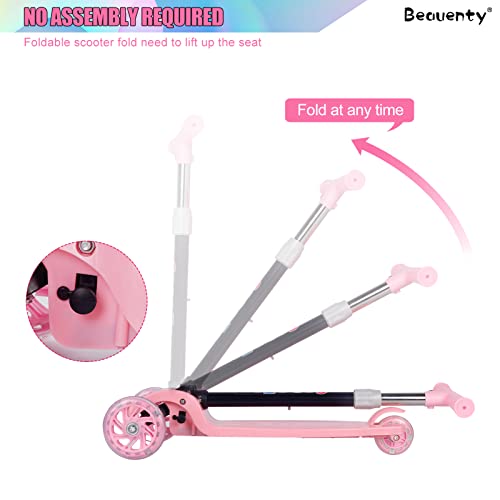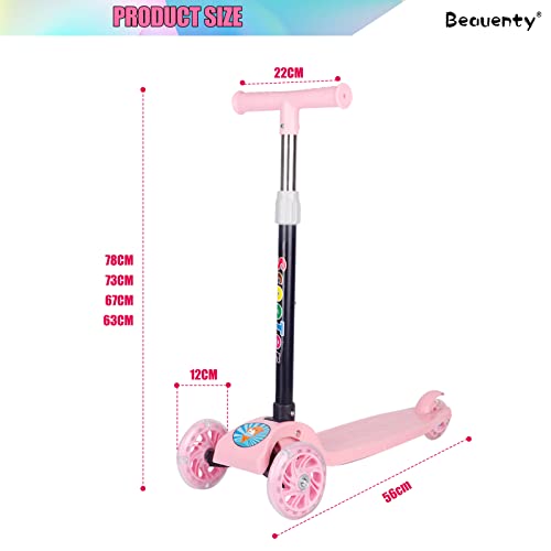 سكوتر للاطفال بثلاث عجلات قابل للتعديل والطي من بيونتي، عجلات مزودة بإضاءة ليد، لعمر 2-8 سنوات (لون وردي)