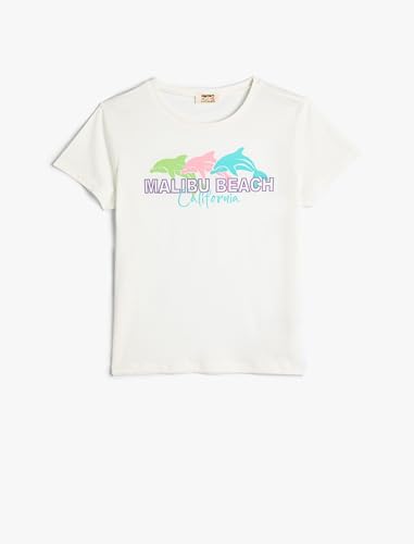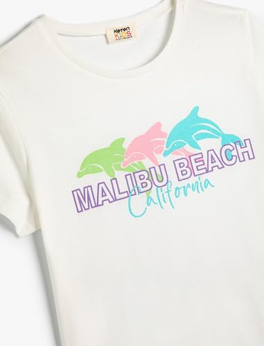 KOTON Girls Dolphin Printed Detail Short Sleeve Crew Neck Tshirt