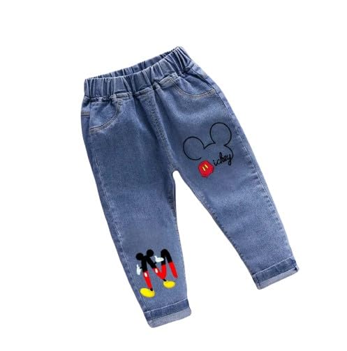 بنطلون اولادي جينز غامق به رسمه صغيره من وسط الرجل و الرجل الاخري رسمه في اخرها
