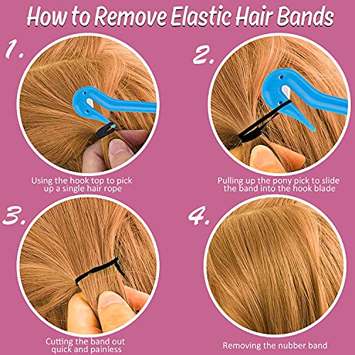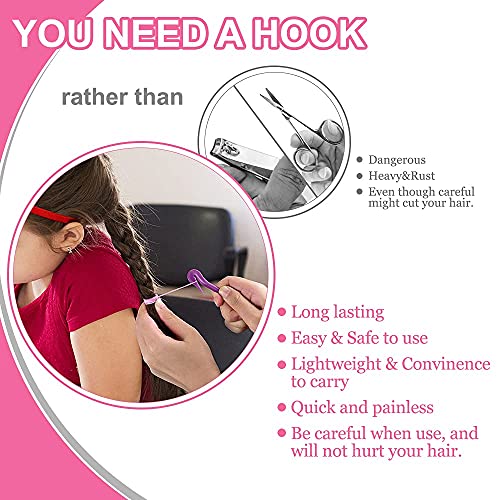 - ❀تعليمات الاستخدام لإزالة ربطات الشعر: استخدمي أطراف الخطاف لالتقاط الأستك الصغير (لاحظي، أستك شعر واحد فقط) وحاولي سحبه، ثم حركيه برفق إلى شفرة الخطاف واقطعيه، وأخيرًا فكيه من الشعر.