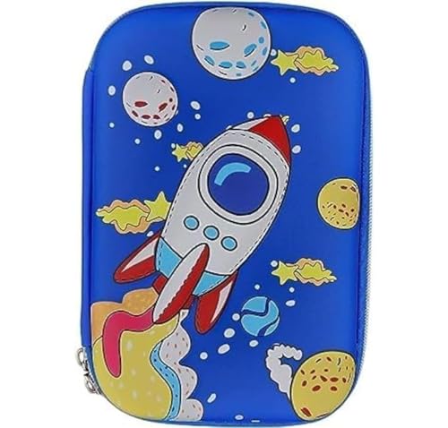 مقلمة مدرسية بسعة كبيرة للاولاد مثالية لتخزين اقلام رصاص متعددة والاقلام وغيرها من الادوات المكتبية. غطاء ثلاثي الابعاد (صاروخ (ازرق)، أسيتات فينيل الإيثيلين (EVA)