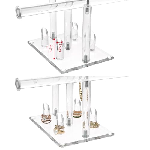 ايكي ديزاين حامل عرض مجوهرات من الاكريليك مكون 3 طبقات مع خواتم للمتاجر والمعارض التجارية والديكور المنزلي، شفاف، 10 × 6 1/4 عمق 15 انش ارتفاع