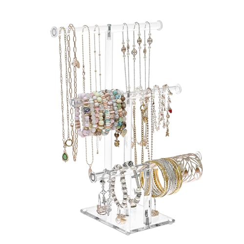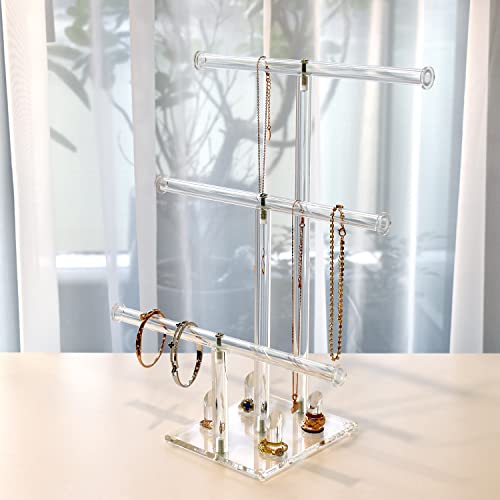 - حامل مجوهرات - يحتوي على 3 طبقات عرض على شكل حرف T للقلائد بأطوال مختلفة و4 حوامل خواتم في القاعدة لإكسسوارات أصابعك.