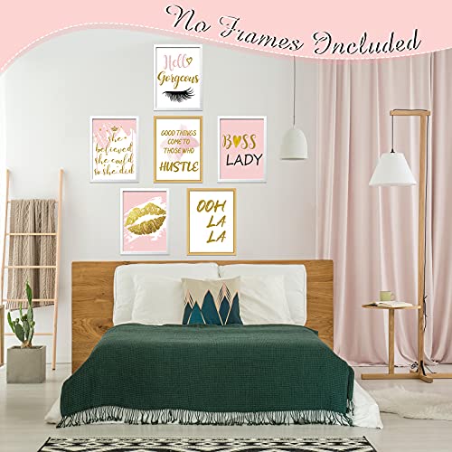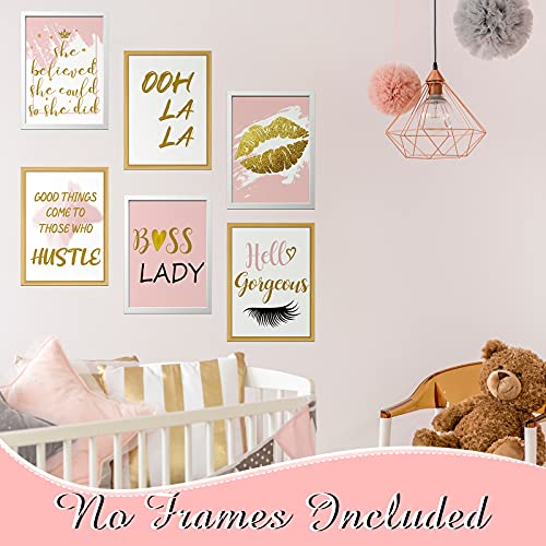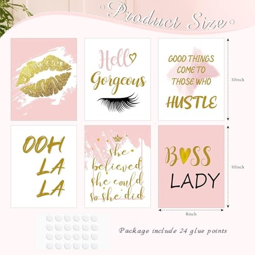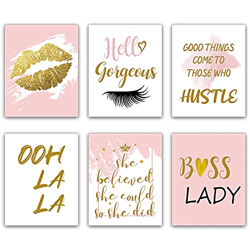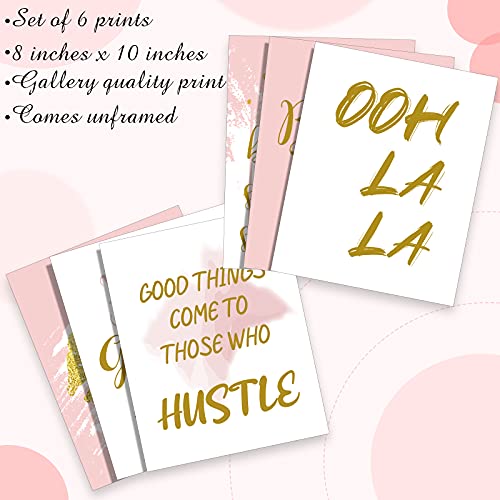 6 قطع فنية ملهمة لسيدة بوص إلام ملصق حائط بمقولة تحفيزية - طباعة سيدة - ديكور وردي غير مؤطرة للنساء الحمام المنزل - غرفة رمـوش - 20.3 سم × 25.4