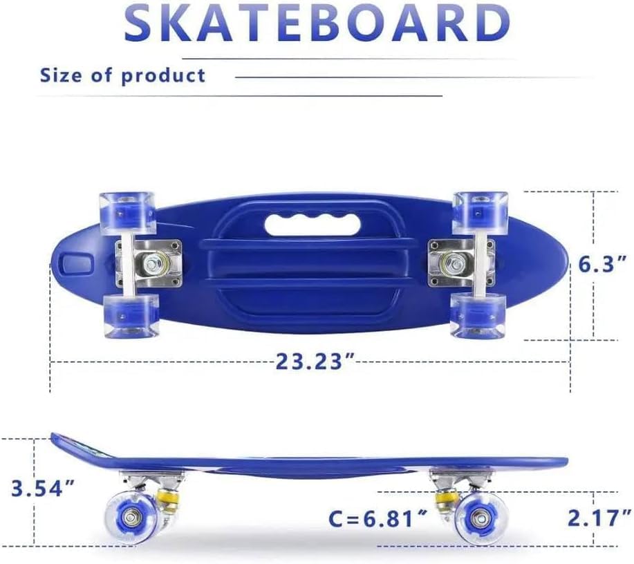 لوح تزلج كامل مقاس 60 سم مع مقابض حمل للأطفال والبنات والأولاد والمراهقين والمبتدئين