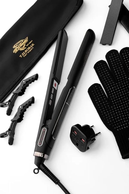 مكواة شعر بركانية حرارية تي اي بي من البوراك بتصميم مريح لعلاج البروتين وتصفيف الشعر سيراميك اسود