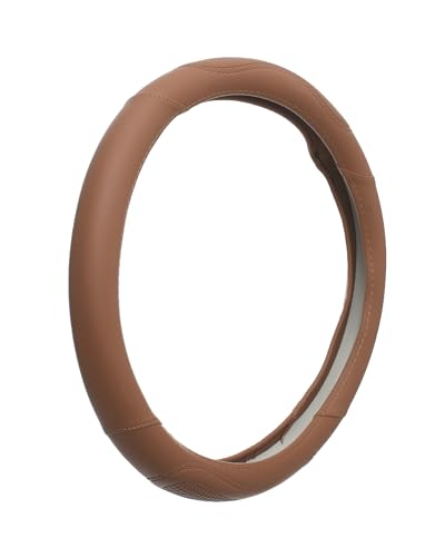 غطاء طارة دركسيون سيارة من سمارت اوتو، مصنوع من مادة ممتازة، مصنوع من السيليكون مغطى بجلد بني
