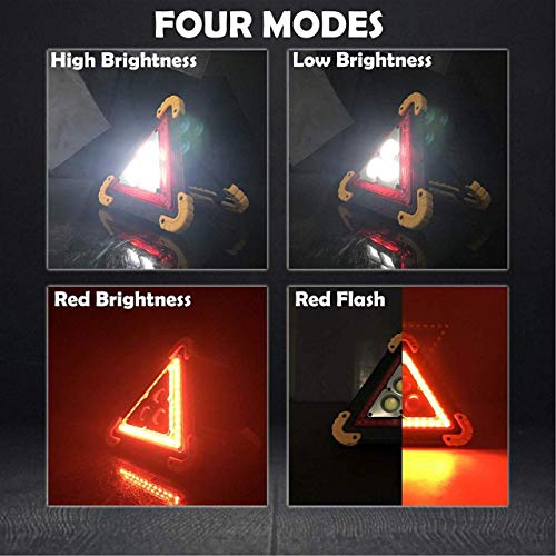 مصباح للطوارئ بإضاءة ليد قابل لإعادة الشحن على شكل مثلث متعدد الاستخدامات (لون أحمر/ أبيض)