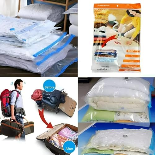 - هذه الأكياس المغلقة بالفراغ مثالية لتخزين الملابس والبطانيات ولعب الأطفال والمزيد ، مما يسمح لك بالحفاظ على أغراضك آمنة ومحمية مع زيادة كفاءة التخزين في منزلك.