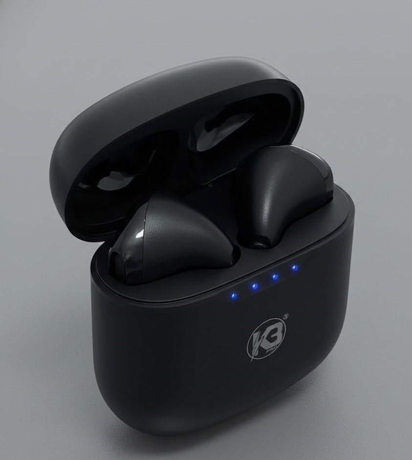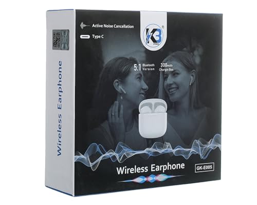 سماعات أذن لاسلكية GK-E005، سماعات بلوتوث 5.0 مع علبة شحن بسعة كبيرة 400mAh، تحكم باللمس، إلغاء الضوضاء النشطة، ملاءمة قابلة للتخصيص، شحن بكابل نوع سي من كيه 3 - أسود