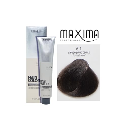 كريم صبغة شعر احترافي من ماكسيما، 100 مل، لون كثيف يدوم طويلًا، يوفر تغطية 100% للشعر الرمادي، تركيبة غنية، يوفر نتائج صالون التجميل في المنزل (6.1 أشقر/رمادي داكن)
