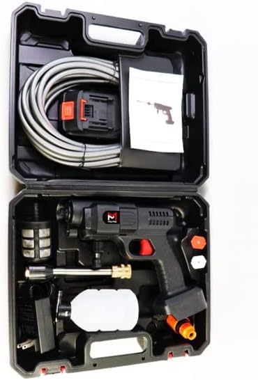 مسدس غسيل بالضغط اللاسلكي، قوة ضغط 80 بار مع بطارية 1500 مللي أمبير في الساعة وخرطوم مياه بطول 6 م مع حافظة، للسيارة والموتوسيكلات والأرضيات والري من ايميم