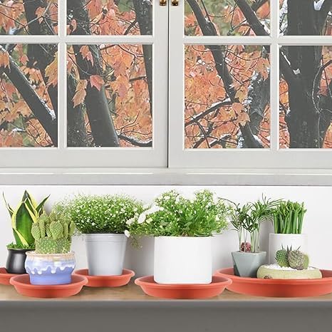 - الأبعاد: مجموعة من 5 أطباق بلاستيكية بلون تيراكوتا ذات حجم مثالي لتوفير دعم ثابت للنباتات والزهور المحفوظة في أصص