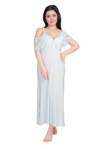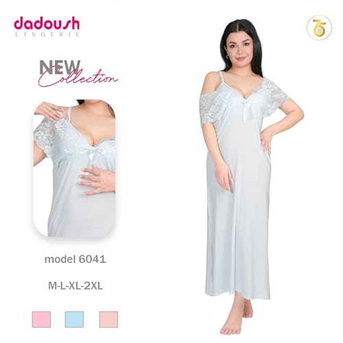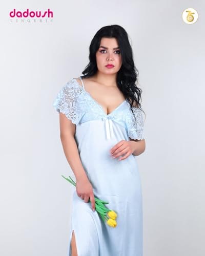 قميص نوم صيفي طويل بأكمام قصيرة دانتيل - ثوب حريمي يغطي الساقين